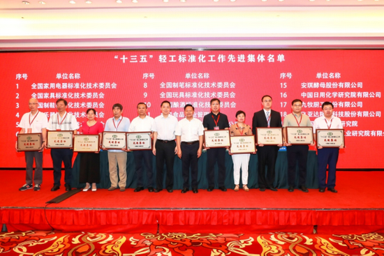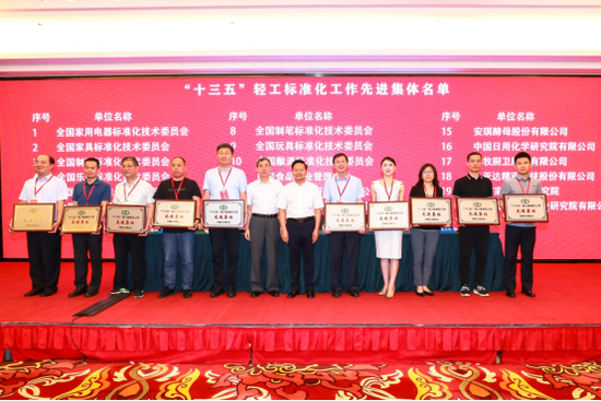 大会还对“十三五”轻工标准化工作先进集体进行了表彰,杜同和宣读表彰决定。中国家用电器研究院、全国家具标准化技术委员会、全国日用陶瓷标准化技术委员会、全国钟表标准化技术委员会、北京市轻工产品质量监督检验一站等单位作为先进集体典型代表交流经验。
