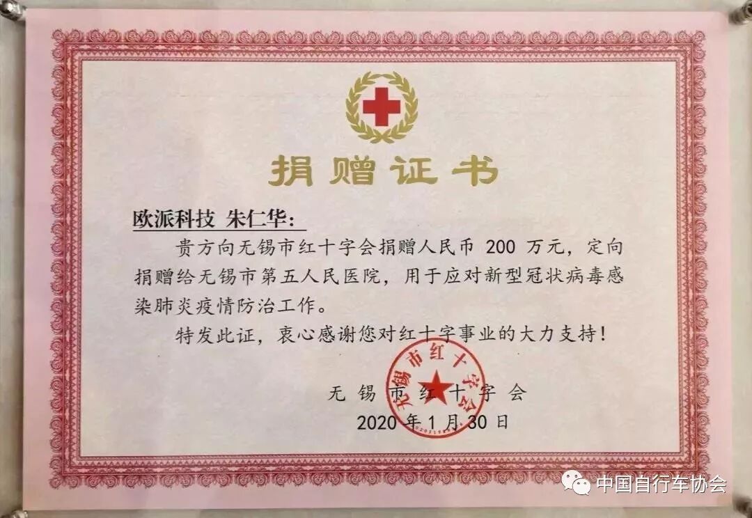 1月30日,无锡市锡山爱心企业家、欧派科技集团董事长朱仁华积极响应号召,向无锡市红十字会捐款200万元,支援当前新型冠状病毒感染的肺炎疫情防控工作,弘扬善举,托起希望,用爱心传递企业正能量!